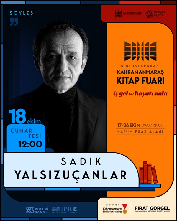 Kahramanmaraş Büyükşehir Belediyesi tarafından düzenlenen 10. Uluslararası Kahramanmaraş Kitap Fuarı, ikinci gününde de birbirinden değerli yazar, düşünür ve akademisyenleri edebiyatseverlerle buluşturmaya devam edecek. KAFUM’da gerçekleştirilen fuarda 18 Ekim Cumartesi günü düzenlenecek söyleşi ve konferanslarda alanında uzman isimler okurlarla bir araya gelecek. Program, saat 12.00’da yazar Sadık Yalsızuçanlar’ın konferansıyla başlayacak. Türk edebiyatının önemli isimlerinden Yalsızuçanlar, düşünce ve edebiyatın kesişim noktasında dinleyicilere unutulmaz bir söyleşi sunacak. Ardından saat 14.00’da Türkiye’nin eski ABD Büyükelçisi Murat Mercan, “Mümkün İhtimallerin En İyisi: Ortadoğu’da Barış” başlıklı söyleşide uluslararası ilişkiler perspektifinden önemli değerlendirmelerde bulunacak.