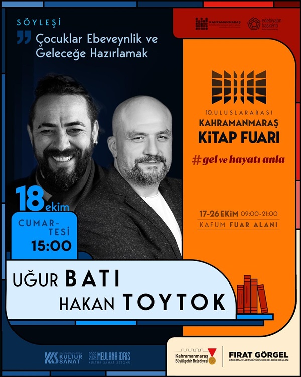 Büyükşehir Belediyesinin 10. Uluslararası Kahramanmaraş Kitap Fuarı’nda 18 Ekim Cumartesi günü birbirinden değerli yazar, düşünür ve akademisyenler KAFUM’da edebiyatseverlerle buluşacak. Gün boyunca gerçekleştirilecek 6 farklı söyleşi programıyla katılımcılara kültür sanat şöleni yaşatılacak.