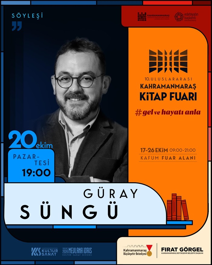 10. Uluslararası Kahramanmaraş Kitap Fuarı’nda 20 Ekim Pazartesi günü; Tarihçi ve Yazar Mehmet Işık ve Türk öykü ve roman yazarı Güray Sürgü, fuarda kitapseverlerle bir araya gelerek söyleşi gerçekleştirecek.