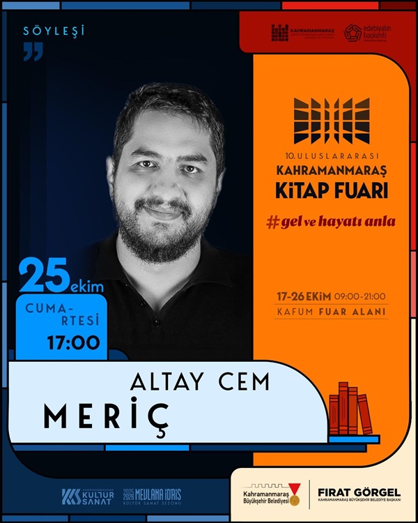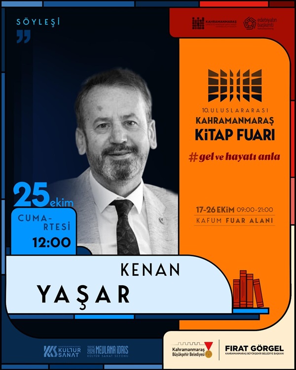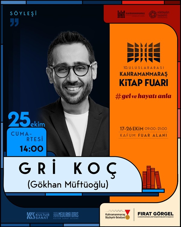 Kahramanmaraş Büyükşehir Belediyesi tarafından bu yıl 10’uncusu gerçekleştirilen Uluslararası Kitap Fuarı, kültür ve sanat dünyasını vatandaşlarla buluşturmaya devam ediyor. KAFUM’da düzenlenen fuar, 25 Ekim Cumartesi günü edebiyatseverlere unutulmaz bir kültür şöleni yaşatacak. Söyleşi etkinliklerinde sahne alacak 7 değerli yazar, edebiyat, tarih, kişisel gelişim ve çocuk kitapları gibi geniş bir yelpazede konular ele alarak katılımcılarla interaktif sohbetler gerçekleştirecek.