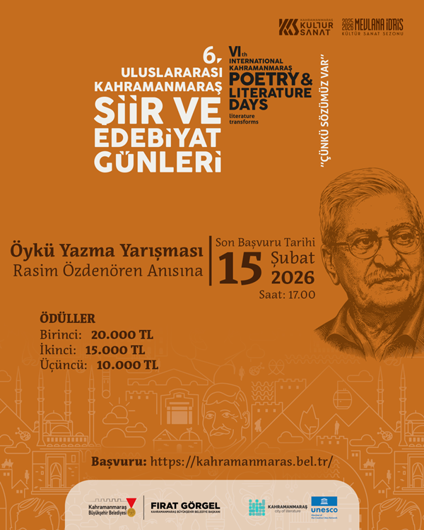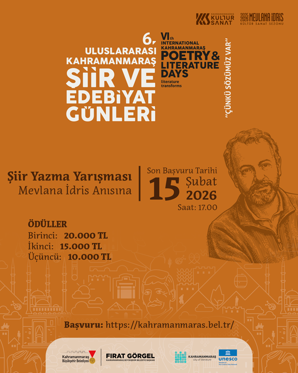 UNESCO tarafından Türkiye’deki tek “Edebiyat Şehri” unvanına sahip olan Kahramanmaraş, bu güçlü kültürel mirasını yeni etkinliklerle yaşatmaya devam ediyor. Kahramanmaraş Büyükşehir Belediyesi, şehrin edebiyatla özdeşleşen kimliğini daha da güçlendirmek amacıyla kültür sanat faaliyetlerini artırarak sürdürürken, edebiyat dünyasını bir araya getirecek önemli bir organizasyonu daha hayata geçiriyor. Bu kapsamda, bu yıl 6’ncısı düzenlenecek Uluslararası Kahramanmaraş Şiir ve Edebiyat Günleri çerçevesinde Türkiye geneli şiir ve öykü yazma yarışması başlatıldı. Edebiyatseverlerin yoğun ilgi göstermesi beklenen yarışma, genç ve yetişkin kalemleri aynı çatı altında buluşturmayı hedefliyor. Yarışmaya, Türkiye genelinde 15 yaş ve üzeri tüm edebiyat tutkunları katılım sağlayabilecek. Katılımcılar, edebi yeteneklerini şiir ve öykü olmak üzere iki ayrı kategoride sergileme imkânı bulacak. Jüri üyeleri tarafından değerlendirilecek eserler arasından dereceye giren katılımcılar, para ödülleri ve plaketlerle ödüllendirilecek.